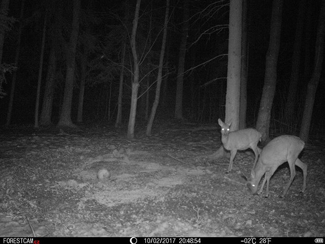 Noční snímky jsou plynule a prvotřídně prosíceny. FORESTACAM umí dělat fotopasti, které nepotřebují ke kvalitnímu prosícení zbytečně mnoho diod, které razantně vybijí baterie.